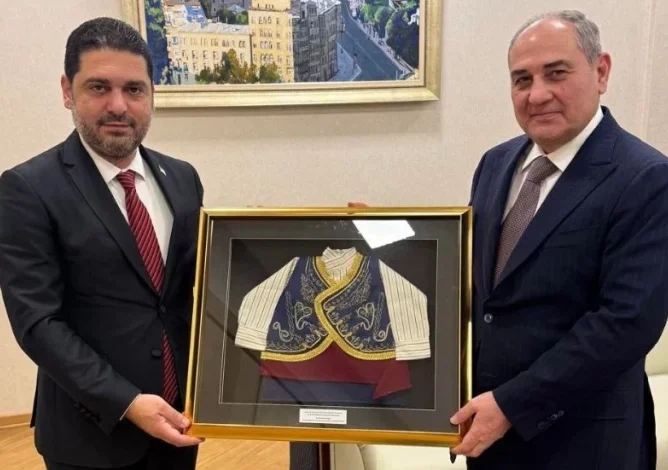UBP Grup Başkanvekili Dr. Ahmet Savaşan, Azerbaycan’ın başkenti Bakü’de Yeni Azerbaycan Partisi Genel Başkanvekili Tahir Budakov...