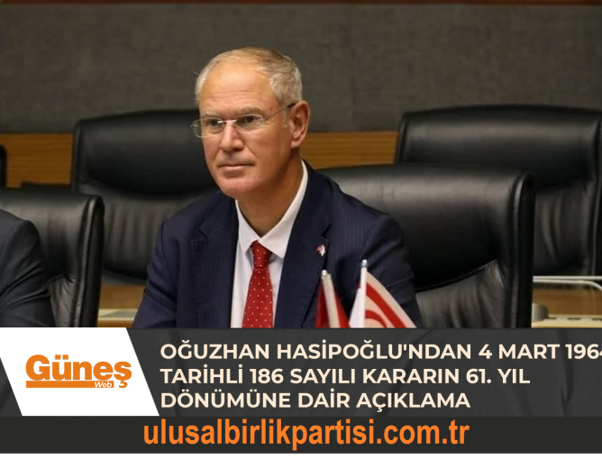 Ulusal Birlik Partisi (UBP) Genel Sekreteri Oğuzhan Hasipoğlu, 4 Mart 1964 tarihli 186 Sayılı kararın 61....