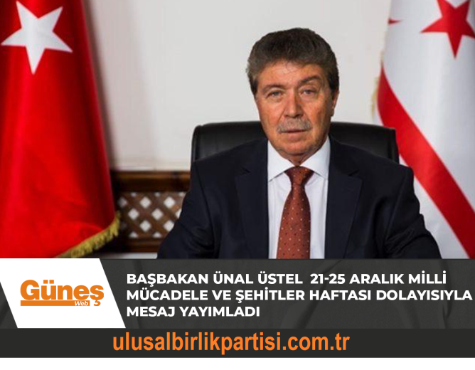 Başbakan Ünal Üstel, 21-25 Aralık Milli Mücadele ve Şehitler Haftası dolayısıyla Mesaj Yayımladı Aziz Halkımız, Bugün,...