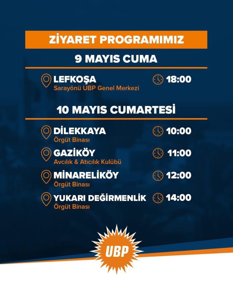 9 Mayıs 2025 18:00 Lefkoşa Sarayönü UBP Genel Merkezi