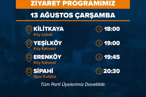 Kilitkaya, Yeşilköy, Erenköy, Sipahi Ziyaret Programımız